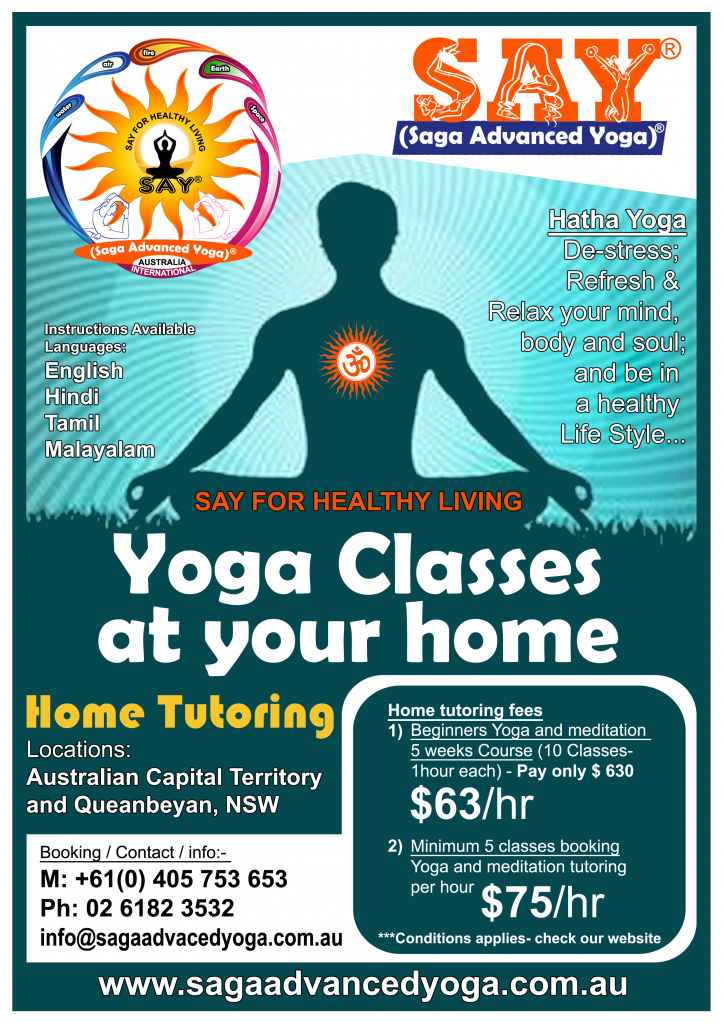 sAY (Saga Advanced Yoga) Yoga Classes at your home In Australian Capital Territory and Queanbeyan, NSW MORE YOGA INFO - Click here More Yoga Info - Click here